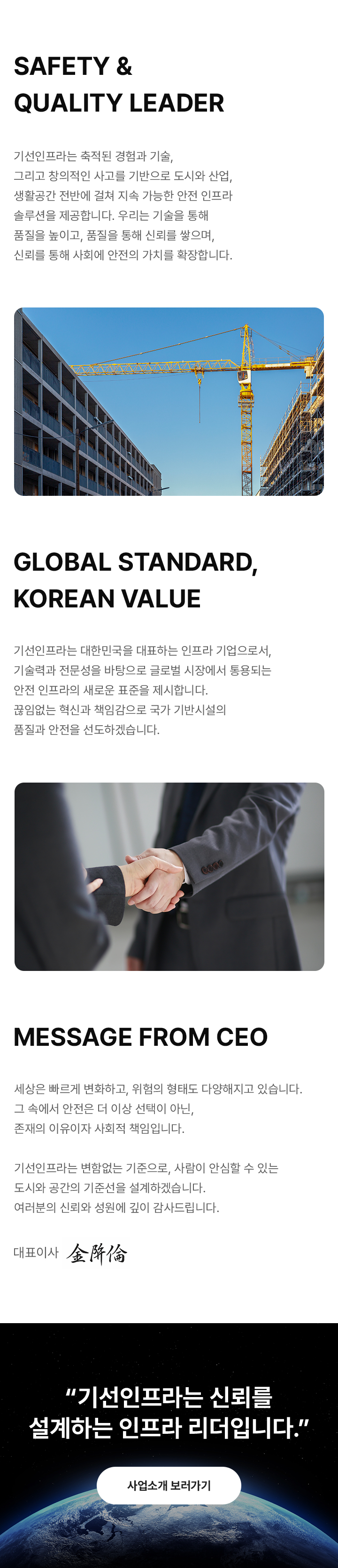 기선인프라는 ‘안전’과 ‘품질’을 기업의